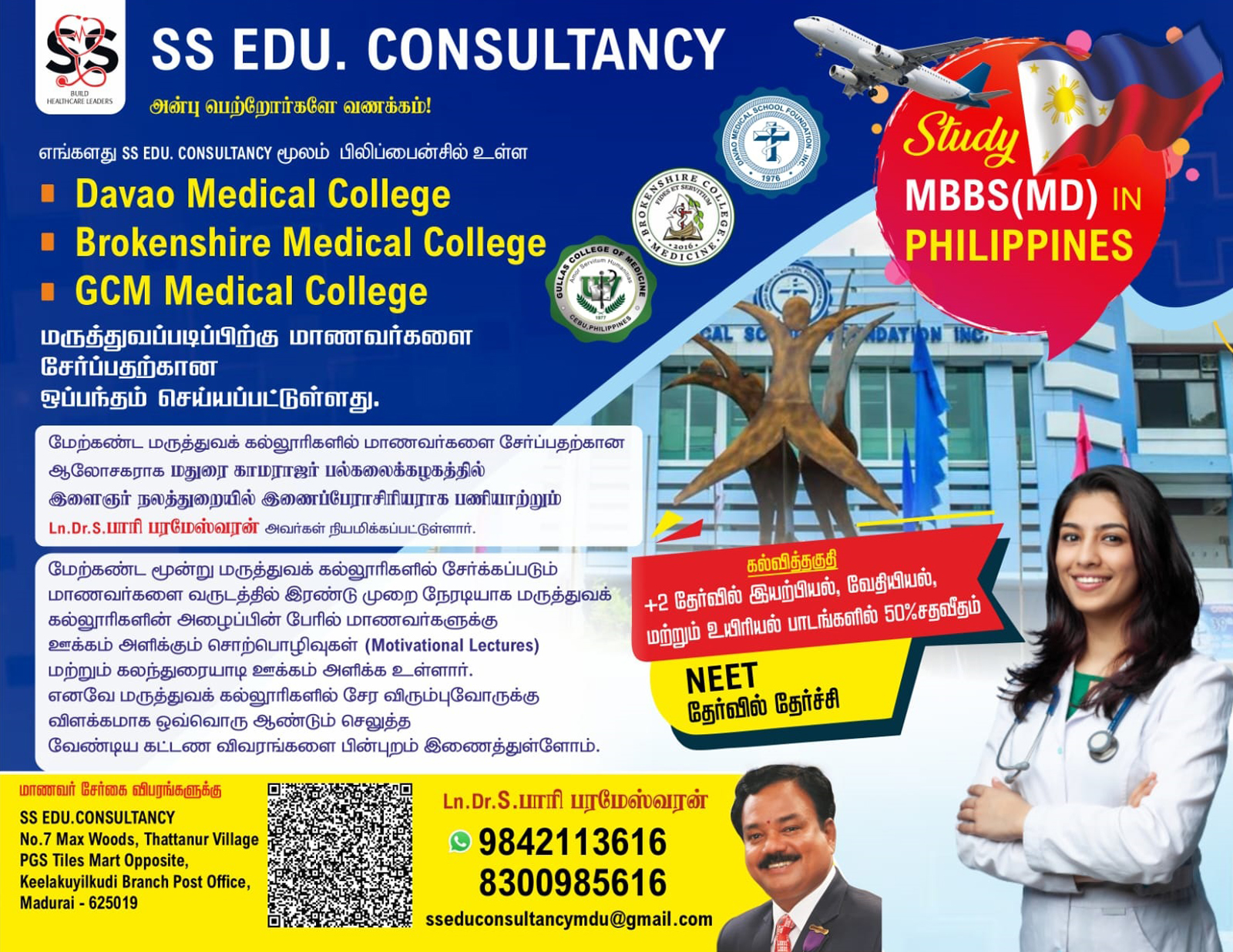 Pursuing an MBBS degree in Philippines to become an increasingly popular and smart choice for Indian students aspiring to become globally competent doctors. The Philippines offers a world-class medical education system based on the U.S. curriculum, entirely taught in English, making it easy for Indian students to adapt and excel. With affordable tuition fees, no donation or capitation charges, and high FMGE (NEXT) pass rates, the country provides an excellent return on investment. The overall academic journey spans 5.5 to 6 years, comprising a pre-medical (BS) program followed by the Doctor of Medicine (MD) course, which is equivalent to the MBBS degree in India. The Philippines also offers strong clinical training in top government hospitals, preparing students through real-world exposure. From college selection, admission, visa processing, and travel arrangements to hostel and food assistance, proper guidance is essential at every stage. Expert consultancies like SS Edu. Consultancy play a crucial role by offering end-to-end career support, ensuring students and their parents are confident and well-informed. With the right mentorship, students can successfully navigate the admission process, complete their MBBS degree in the Philippines, clear licensing exams like NEXT or USMLE, and begin a rewarding medical career in India or Philippines.
